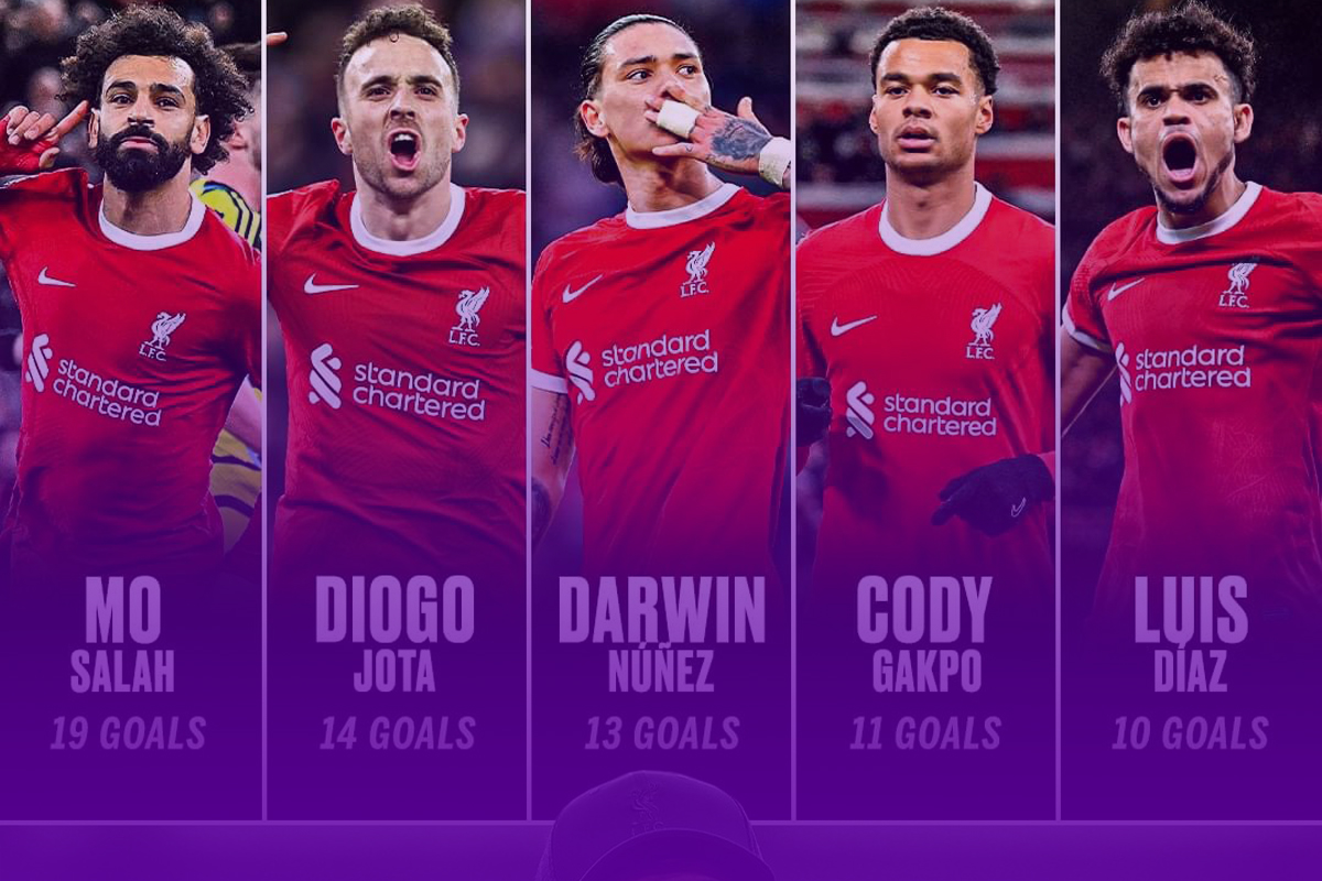 តាមរយៈការរកបានមួយគ្រាប់កាលពីយប់មិញរបស់កីឡាករ Luis Diaz បានធ្វើឲ្យគាត់ក្លាយជាខ្សែប្រយុទ្ធទី 05 របស់ក្លឹប Liverpool ដែលអាចរកគ្រាប់បាល់បាន 10 គ្រាប់បូកនៅរដូវកាលនេះ។ បើយោងតាមការបញ្ជាក់របស់លោក Michael Reid បានឲ្យដឹងថា ពេលនេះ Liverpool មានកីឡាករ 05 នាក់ដែលអាចរកគ្រាប់បាល់បាន 10 គ្រាប់បូក ដែលគ្មានក្លឹបណាអាចធ្វើបានដូចពួកគេបានឡើយរយៈពេល 128 ឆ្នាំមកហើយ ពោលគឺគិតចាប់តាំងពីរដូវកាលឆ្នាំ 1895-1896 មក។ អ្នកទាំង 05 នាក់នោះមានដូចជា Luis Diaz គឺជាកីឡាករទីប្រាំដែលអាចរកបាន 10 គ្រាប់ បន្ទាប់មកមានកីឡាករ Mohamed Salah 19 គ្រាប់ Diago Jota 14 គ្រាប់ Darwin Nunez 13 គ្រាប់និងកីឡាករ Cody Gakpo 11 គ្រាប់ ៕